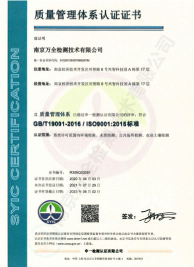 南京萬全檢測技術(shù)有限公司,籌建于2013年1月,注冊資金500萬,公司坐落于南京經(jīng)濟(jì)技術(shù)開發(fā)區(qū)興智路6號興智科技園A棟17層,實(shí)驗(yàn)室占地面積1750余平米。公司是一家獲得省級CMA計量認(rèn)證資質(zhì)、具有獨(dú)立法人、政府認(rèn)可的綜合性、專業(yè)性的檢測機(jī)構(gòu)。環(huán)境監(jiān)測業(yè)務(wù)是其重要的檢測業(yè)務(wù)之一,目前已獲得省級計量資格認(rèn)可項(xiàng)目314項(xiàng),設(shè)備齊全,具有較強(qiáng)的技術(shù)能力。